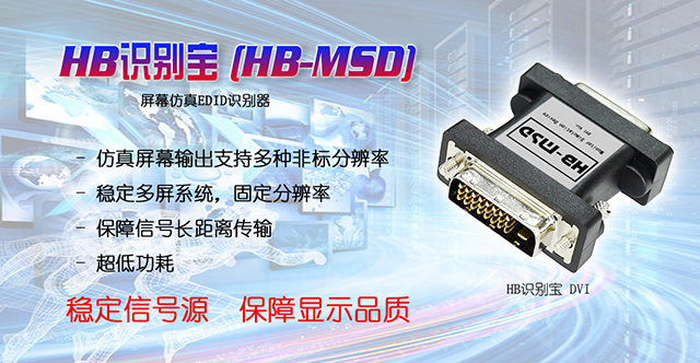 HB-MSD识别宝(Monitor Simulation Device, HB-MSD)产品通过提供适当的、原始设置的EDID信息,有助于预防和解决这些问题。通过连接HB-MSD识别宝在信号发送端设备上,能够自动连续地进行EDID输出,确保信号发送端设备提供合适的以及可靠的图像内容输出。